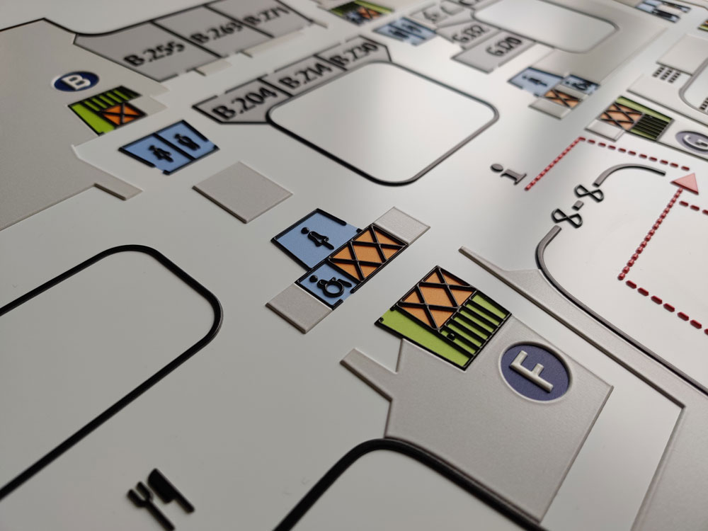 Im Zuge eines Rebrandings wurde im Jahre 2018 das Layout überarbeitet und auch die taktile Ausstattung der Leitsysteme im Portfolio verankert. Seitdem ist die taktile Ausstattung der Türschilder mit Braille- und Klartexten ein fester Bestandteil der Systeme, in der Regel werden die kompletten Leitsysteme entsprechend von uns ausgestattet. Ein großer Vorteil ist jedoch die Option des Informations-Updates: wir haben die Möglichkeit innerhalb der bestehenden, von uns gelieferten Systeme Paneele gegen taktil ausgestattete auszutauschen. Ein großer Pluspunkt für schnelle und einfache, von uns gelieferten, Informationsanpassung sowie Investitionsschutz.